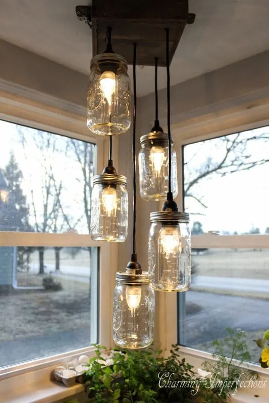 Un luminaire avec des bocaux en verre