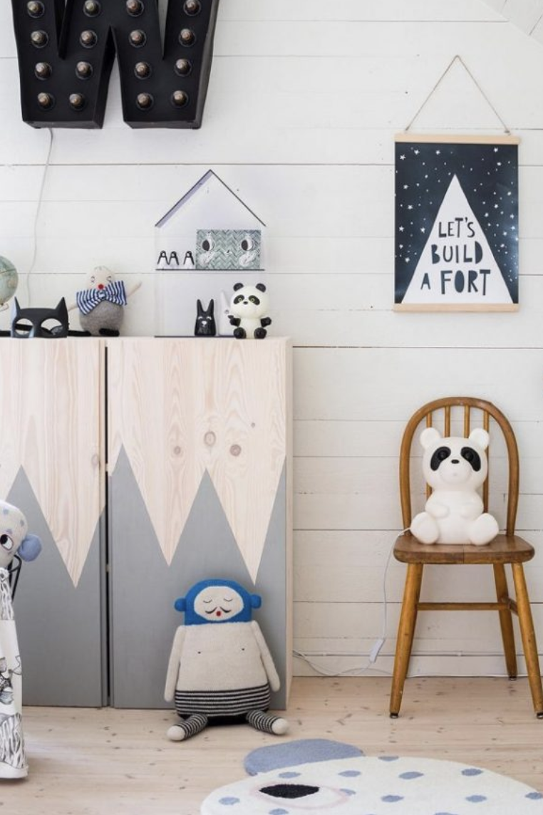3eme idée : pourquoi ne pas réaliser des formes géométriques ( montagnes, losanges …) avec du ruban adhésif ? Une astuce ludique, simple et drôlement efficace pour customiser le meuble en un instant !