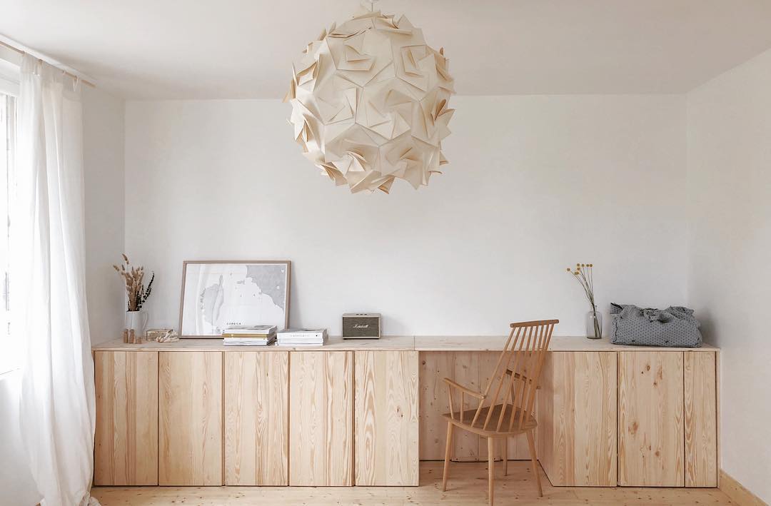 Bureau réalisé à partir de caissons Ivar en pin brut / source : instagram @octobre_et_mai